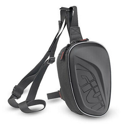 • Cinghie da gamba elasticizzate e regolabili, con chiusura che evita la rotazione del borsello durante la marcia